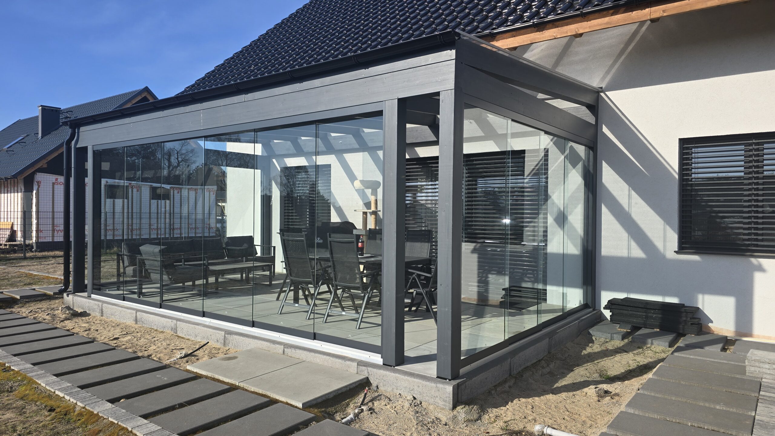Ein Wintergarten aus Holz überzeugt sowohl durch sein Erscheinungsbild als auch durch seine Eigenschaften. Holz ist ein natürlicher Isolator, der sowohl im Sommer als auch im Winter ein angenehmes Raumklima gewährleistet und gleichzeitig ein gesundes Mikroklima schafft. Seine einzigartige Ästhetik sorgt dafür, dass sich ein Kaltwintergarten aus Holz harmonisch in moderne wie klassische Häuser einfügt. Diese Vorzüge – kombiniert mit präziser Verarbeitung – machen einen Wintergarten aus Polen zu einer Lösung, die Funktionalität und Eleganz vereint, dabei langlebig und energieeffizient bleibt.