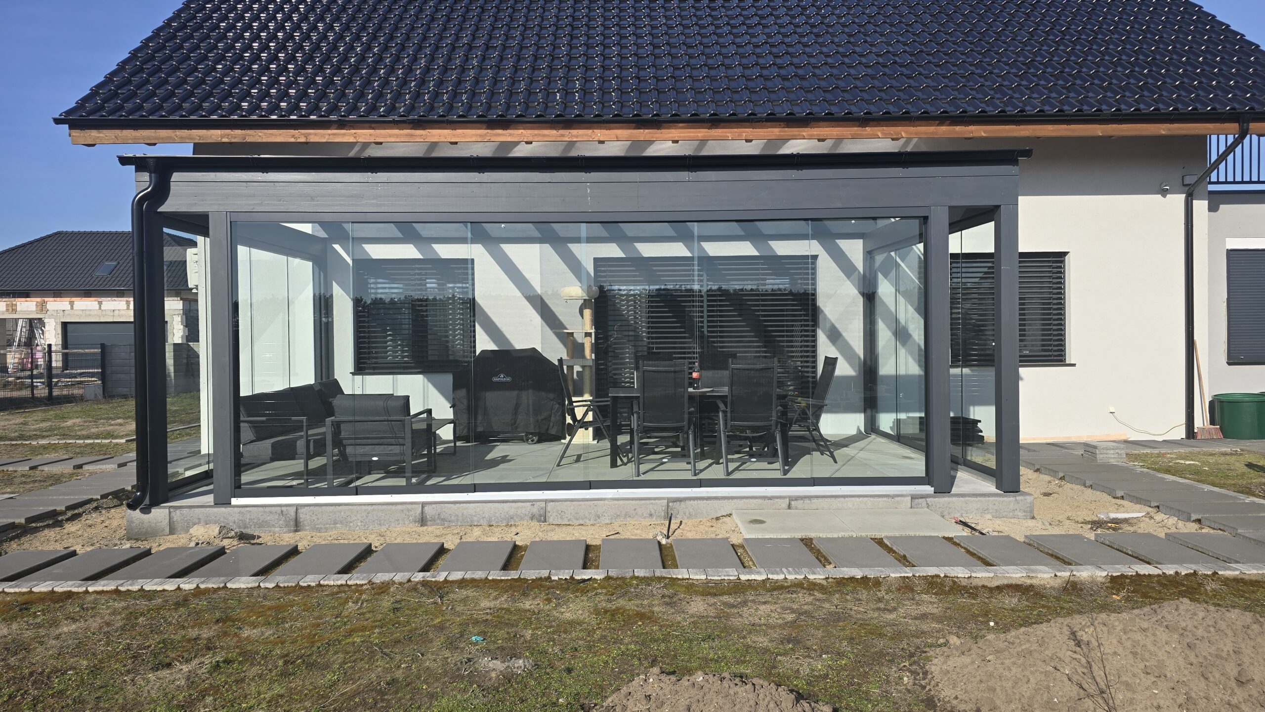 So können Sie den Raum im Sommer luftig und offen gestalten und ihn im Winter geschlossen als geschützten Aufenthaltsbereich nutzen.